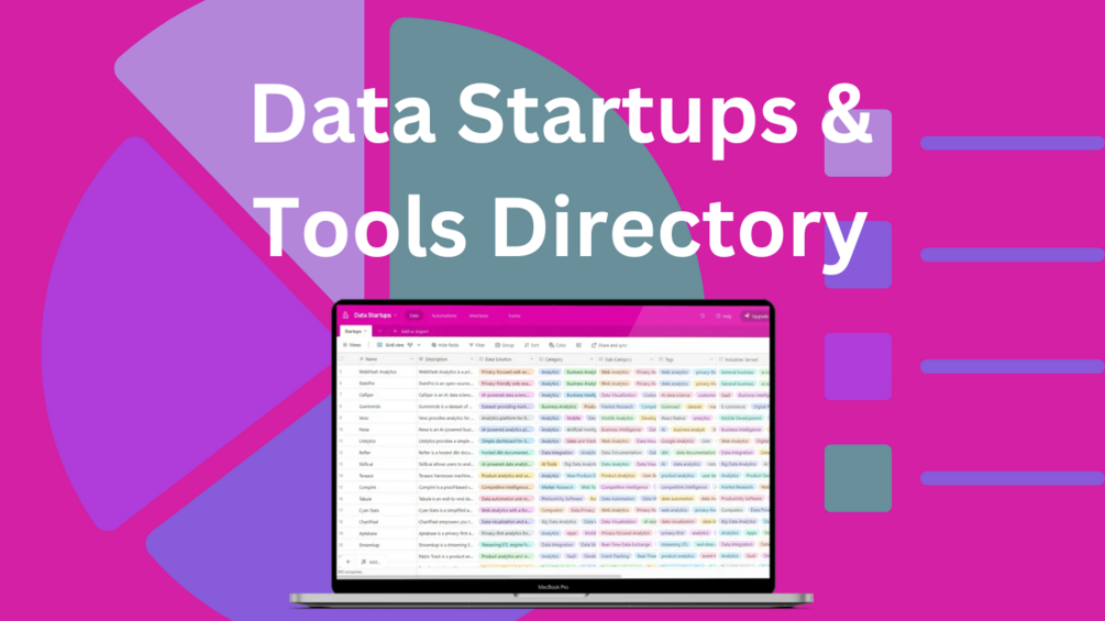 In a world inundated with data, having the right tools and partners is crucial. This directory saves you countless hours of research and provides a comprehensive view of the data landscape, all in one place. Whether you're solving complex data challenges, innovating new products, or optimizing business processes, this directory is your go-to resource.